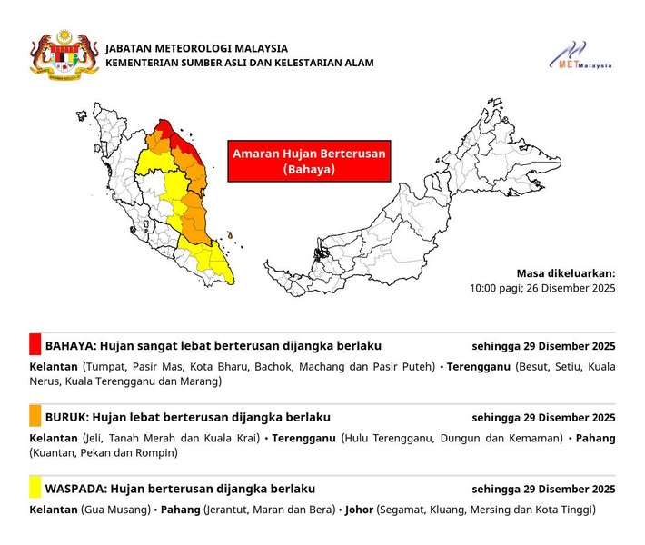 Dikeluarkan pada: 10:00 pagi, 26 Disember 2025 oleh MET Malaysia